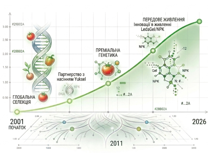 Ексклюзивний імпорт перевірених гібридів Yuksel Seeds та розробка власної лінійки насіння LEDA для професійних теплиць і відкритого ґрунту.